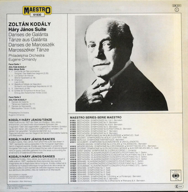Eugene Ormandy – Háry János Suite / Dances Of Marosszek & Galanta