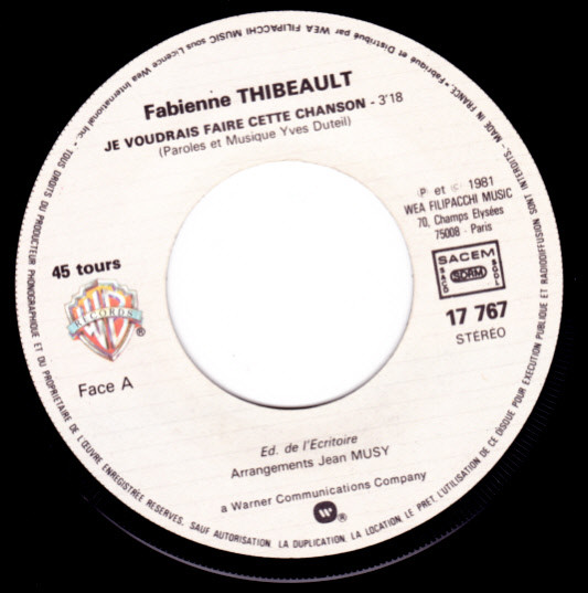 Fabienne Thibeault – Je Voudrais Faire Cette Chanson (1981) – Very Good Plus (VG+)