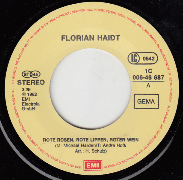 Florian Haidt – Rote Rosen, Rote Lippen, Roter Wein (1982) – Very Good Plus (VG+)