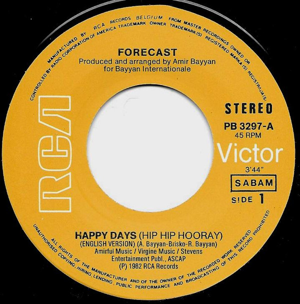 Forecast – Happy Days (Hip Hip Hooray) / Dias Alegré (Spanish Version) (1982) – Very Good (VG)