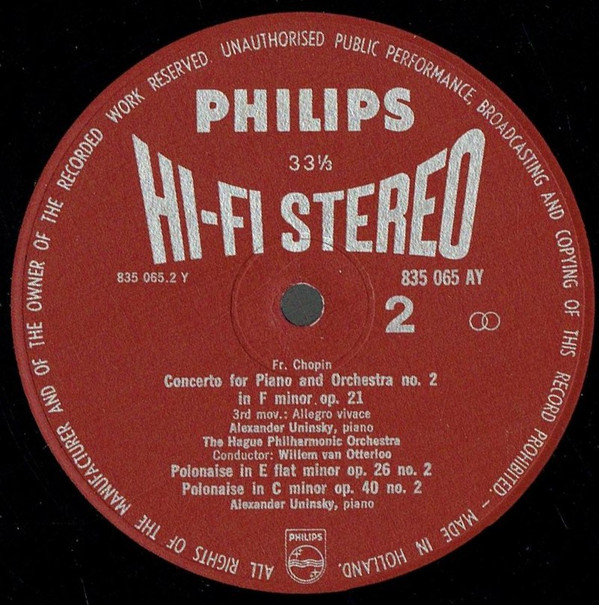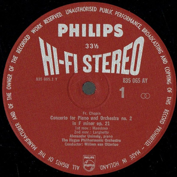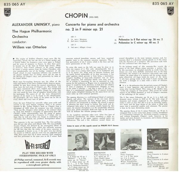 Frédéric Chopin – Piano Concerto No. 2 / Polonaise In E Flat Minor / Polonaise In C Minor () – Very Good (VG)