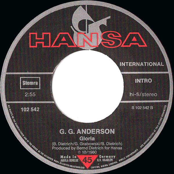 Catalog# on sleeve : 102 542-100 Produced for Hansa ℗ 10/1980 Made in Germany Ariola Benelux B.V. Haarlem