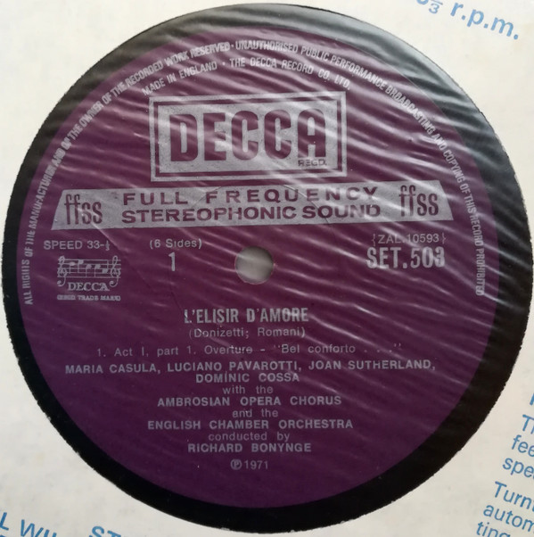 Gaetano Donizetti – L’Elisir D’Amore (1971) – Very Good Plus (VG+)