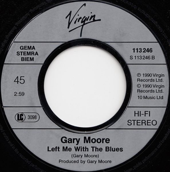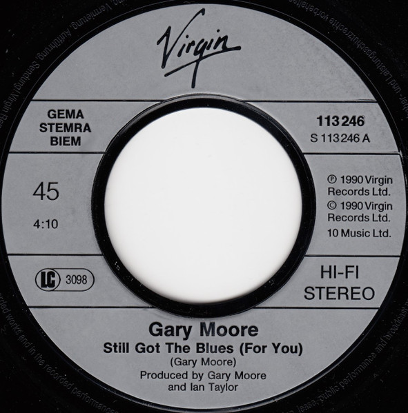 ℗ 1990 Virgin Records Ltd. © 1990 Virgin Records Ltd. Printed in W. Germany by Topac Also Available The Album, Cassette & Compact Disc [url=http://www.discogs.com/Gary-Moore-Still-Got-The-Blues/master/83029]’Still Got The Blues'[/url] Cat# 113 246 on the labels Cat# 113 246-100 on the sleeve Cat# VS 1267 on the sleeve Runouts are stamped, except the last Roman numerals in variant 2 which are etched.