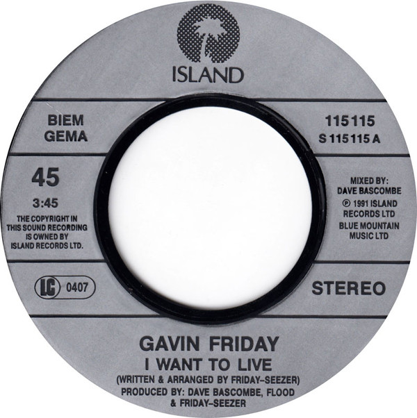 Gavin Friday – I Want To Live (1991) – Very Good Plus (VG+)