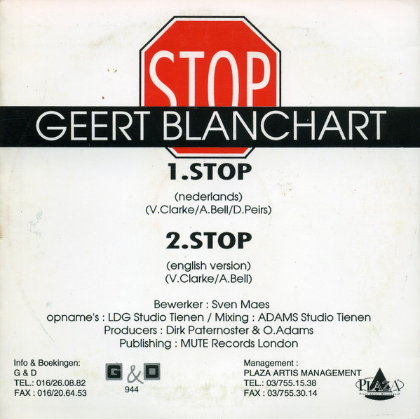 Recorded at LDG Studio Tienen (B) Mixing at Adams Studio Tienen (B) Comes in a Cardboard Sleeve Exact image on sleeve is a ‘Stop sign’ with ‘Geert Blanchart’ mentioned on top.