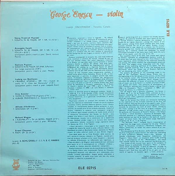 George Enescu – Historical Recordings (1985) – Near Mint (NM or M-)