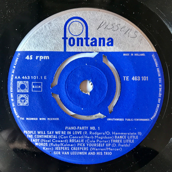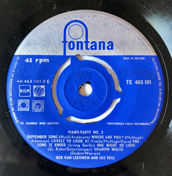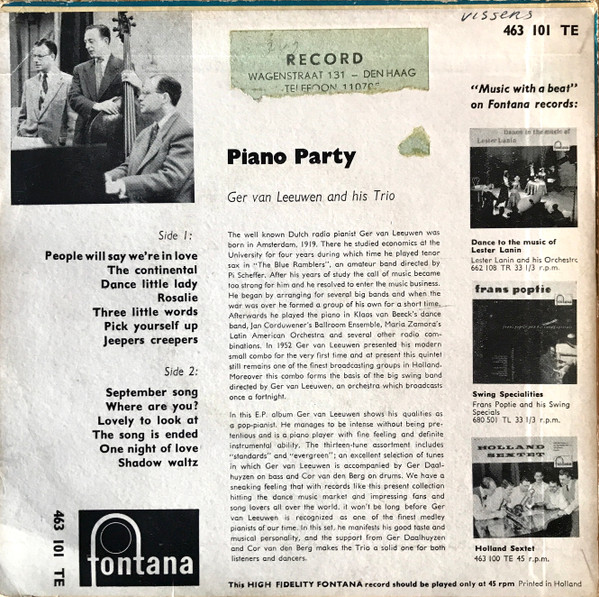 Ger van Leeuwen And His Trio – Piano Party () – Very Good Plus (VG+)