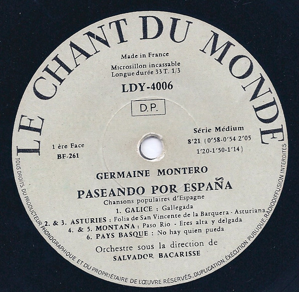 Germaine Montero – Paseando Por España (13 Chansons Populaires D’Espagne) () – Very Good Plus (VG+)