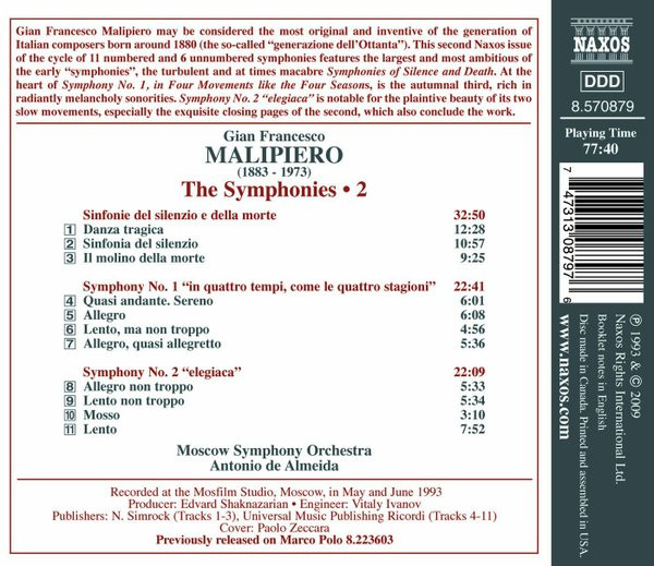 Gian Francesco Malipiero – Symphonies Nos. 1 And 2; Sinfonia Del Silenzio E Della Morte (2009) – Near Mint (NM or M-)