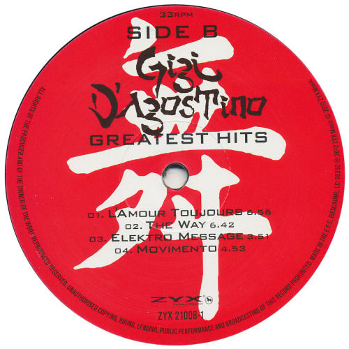 Gatefold sleeve All information in the runouts is etched. File under: Dance Made in the E.E.C. ⋆ ℗ 2012 ZYX Music ℗ ⋆ © 2012 ZYX Music LP1 // TT: 42.43 Min. LP2 // TT: 43.06 Min. Publishing companies / rights societies: A01 Edizioni ZYX Music SRL/Warner Bros Italy/Musikverlag B. Mikulski/Warner Chappell A02 Musikverlag B. Mikulski/Edizioni ZYX Music SRL/Warner Bros Italy/Warner Chappell A03 Edizioni ZYX Music SRL/Warner Bros Italy/Musikverlag B. Mikulski/Warner Chappell A04 Edizioni ZYX Music SRL/Warner Bros Italy/Musikverlag B. Mikulski/Warner Chappell B01 Edizioni ZYX Music SRL/Warner Bros Music/Musikverlag B. Mikulski/Warner Chappell B02 Ed. Bible Black (ASCAP) B03 Edizioni ZYX Music SRL/Warner Bros Italy/Musikverlag B. Mikulski/Warner Chappell B04 Warner Bros Italy/Musikverlag B. Mikulski/Edizioni ZYX Music SRL/Warner Chappell C01 Rondor Musikverlag GmbH C02 Edizioni ZYX Music SRL/Warner Bros Italy/Musikverlag B. Mikulski/Warner Chappell C03 Edizioni ZYX Music SRL/Warner Bros Italy/Musikverlag B. Mikulski/Warner Chappell C04 Edizioni ZYX Music SRL/Warner Bros Italy/Musikverlag B. Mikulski/Warner Chappell D01 Warner Bros Italy/Musikverlag B. Mikulski/Edizioni ZYX Music SRL/Warner Chappell D02 Warner Bros Italy/Musikverlag B. Mikulski/Edizioni ZYX Music SRL/Warner Chappell D03 Warner Bros Italy/Musikverlag B. Mikulski/Edizioni ZYX Music SRL/Warner Chappell D04 Warner Bros Italy/Musikverlag B. Mikulski/Edizioni ZYX Music SRL/Warner Chappell All tracks mastered from regular 44.1khz CD Material. The duration of track D3 ‘My Dimension’ is misprinted as: ‘5:35’.