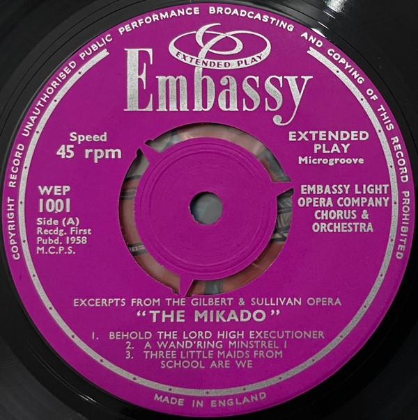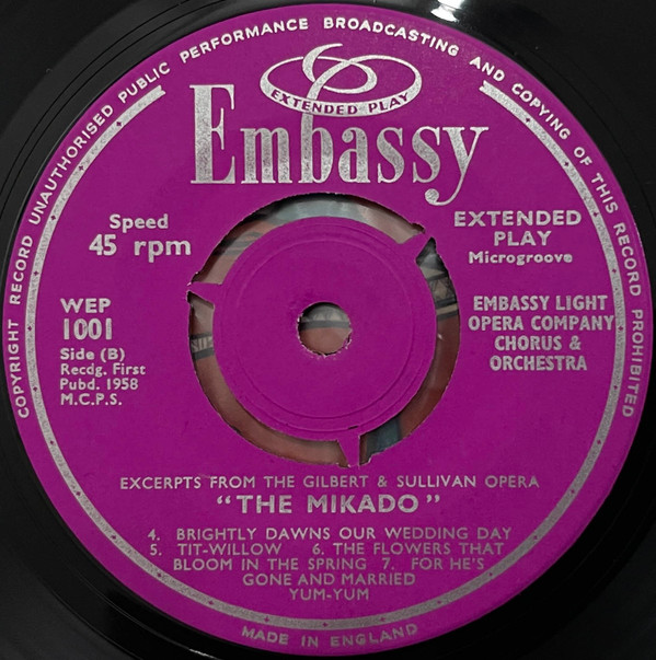Gilbert & Sullivan – Vocal Gems From Gilbert & Sullivan’s ‘The Mikado’ (1958) – Very Good Plus (VG+)