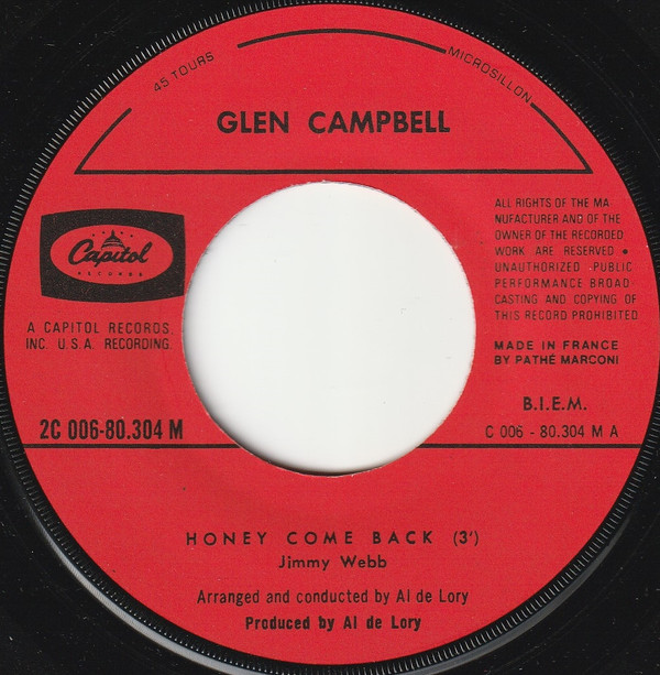 Glen Campbell – Honey Come Back (1970) – Very Good Plus (VG+)