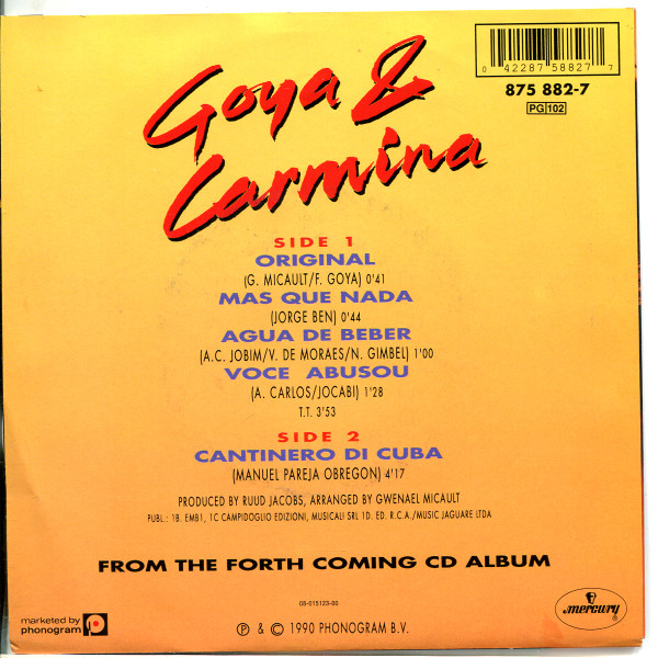 Goya & Carmina – Voce Abusou – Goya & Carmina – Original – Mas Que Nada – Agua de Beber – Voce Abusou (1990) – Very Good Plus (VG+)