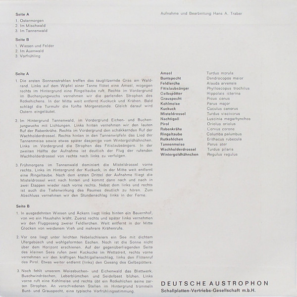 Hans A. Traber – Singende Landschaft (Vogelgesänge) () – Near Mint (NM or M-)