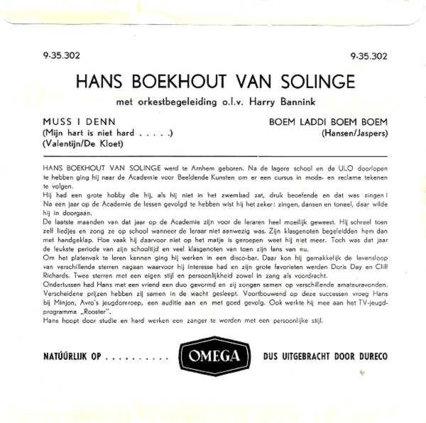 Hans Boekhout van Solinge – Muss I Denn (1960) – Very Good (VG)