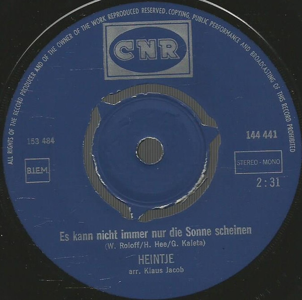 Heintje – Es Kann Nicht Immer Nur Die Sonne Scheinen / Alles Vorbei (1970) – Very Good Plus (VG+)