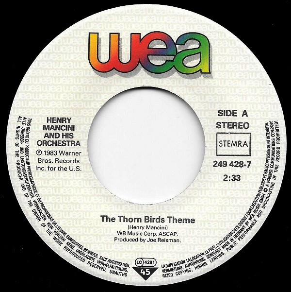 Henry Mancini And His Orchestra – The Thorn Birds Theme (1984) – Very Good Plus (VG+)