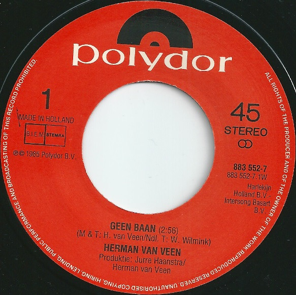 Herman van Veen – Geen Baan (1985) – Near Mint (NM or M-)