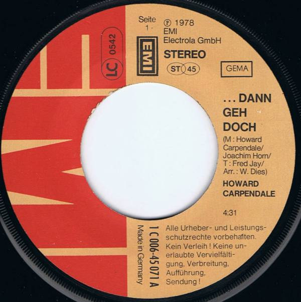 Howard Carpendale – …Dann Geh Doch (1978) – Very Good Plus (VG+)