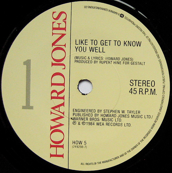 Howard Jones – Like To Get To Know You Well (1984) – Very Good Plus (VG+)
