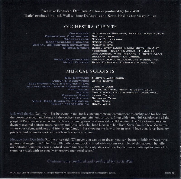 Jack Wall – Myst III: Exile (The Soundtrack) (2001) – Near Mint (NM or M-)