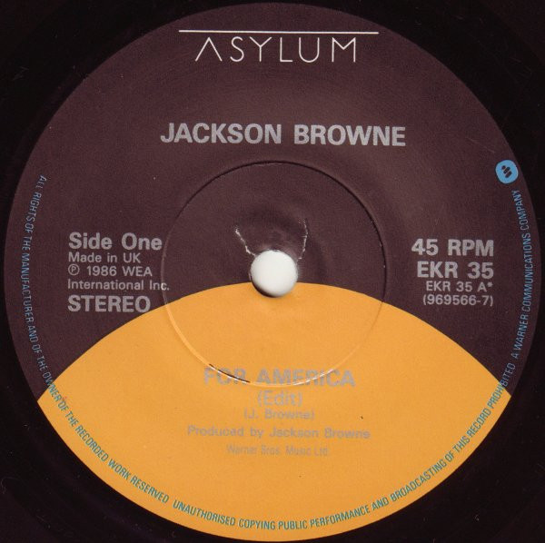 Jackson Browne – For America (1986) – Very Good Plus (VG+)