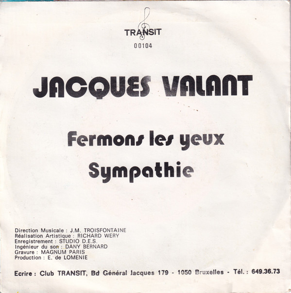 Jacques Valant – Fermons Les Yeux () – Very Good (VG)