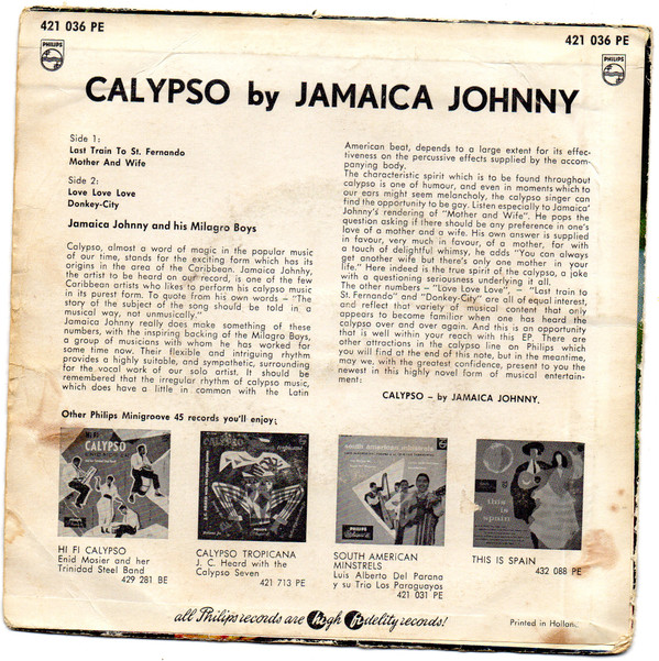 Jamaica Johnny And His Milagro Boys – Calypso By Jamaica Johnny
