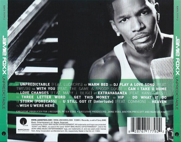 wwww.jamiefoxx.com | www.jrecords.com ℗2005 J Records, a unit is Sony BMG Music Entertainment. Distributed by SONY BMG MUSIC ENTERTAINMENT. All trademarks and logos are protected. ‘SONY’ and ‘BMG’, as used in the name ‘SONY BMG MUSIC ENTERTAINMENT’, and in the SONY BMG MUSIC ENTERTAINMENT logo, are trademarks of, and are used under license from Sony Corporation and Bertelsmann AG, respectively. Made in the EU. Release comes in a clear-tray jewel case with 12-panel double-sided poster. Some version come with a sticker on the jewel case.