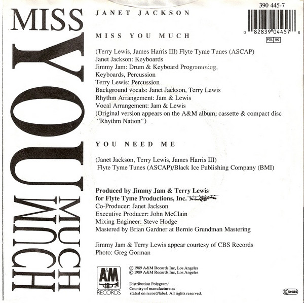 Janet Jackson – Miss You Much (1989) – Near Mint (NM or M-)