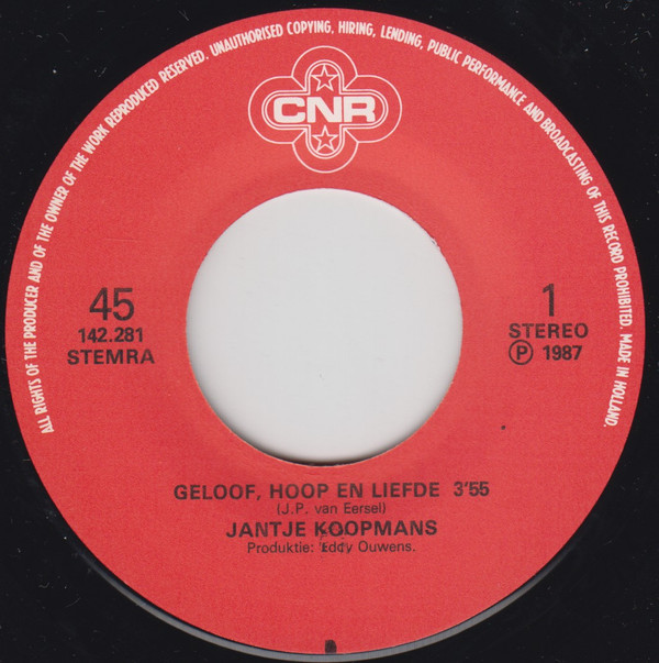 Jantje Koopmans – Geloof, Hoop En Liefde / De Discotheek (1987) – Very Good Plus (VG+)