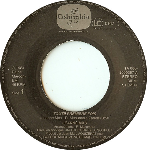 Jeanne Mas – Toute Première Fois (1984) – Very Good Plus (VG+)