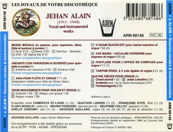 Jehan Alain – Oeuvres Instrumentales & Vocales (1991) – Very Good Plus (VG+)