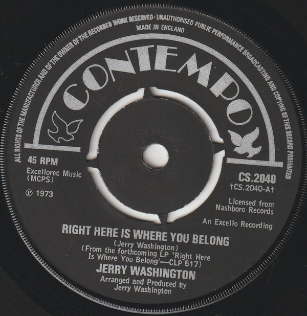 Jerry Washington – Right Here Is Where You Belong / In My Life I’ve Loved (1973) – Very Good Plus (VG+)