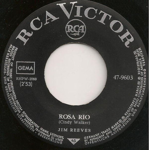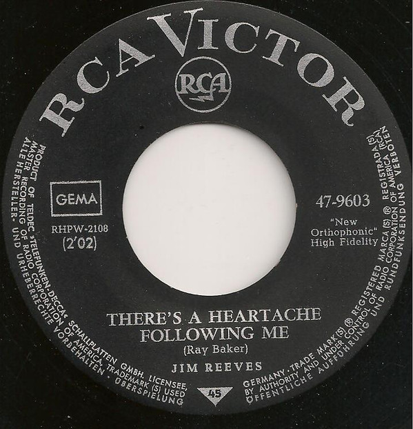 Jim Reeves – There’s A Heartache Following Me / Rosa Rio (1965) – Very Good Plus (VG+)