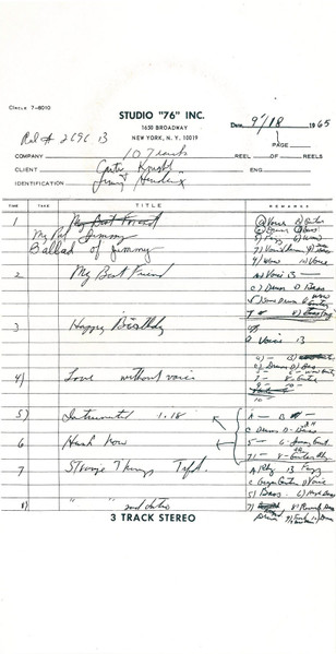 Comes with protocol of studio session (folded inlay) saying: Als Beweis liegt dieser Schallplatte die Kopie des Aufnahme-Protokolls der PPX-Studios New York vom 18.9.1965 bei. = As a proof, a copy of the recording protocol of PPX Studios New York from 1965-9-18 is attached to this record. Hergestellt von der TELDEC »Telefunken-Decca« Schallplatten GmbH., Hamburg PPX Publ. Co. A PPX Production Runouts are stamped except ‘S-II’, which is etched