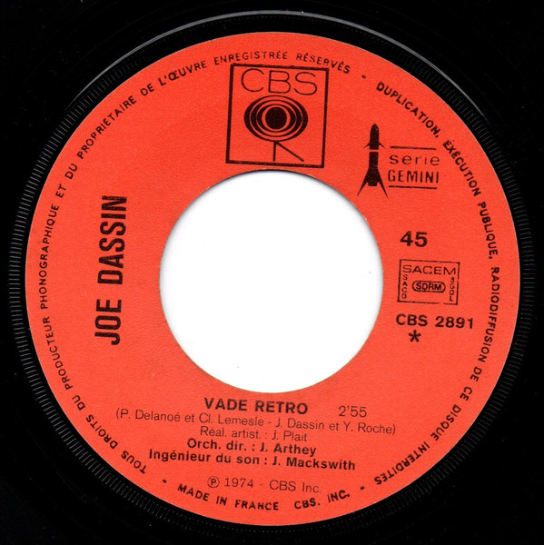 Joe Dassin – Vade Retro / Si Tu T’appelles Mélancolie (1974) – Very Good Plus (VG+)