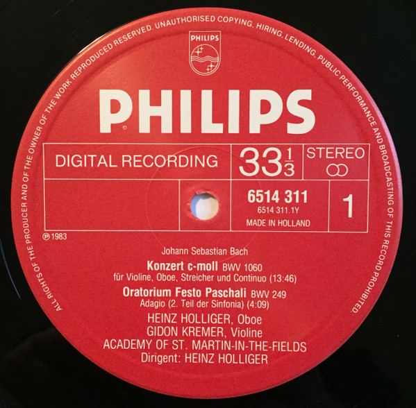 Johann Sebastian Bach – Concerto In C Minor = Konzert C~moll BWV 1060, Sinfonia BWV 249 / Concerti RV. 576 & 582 (1984) – Near Mint (NM or M-)