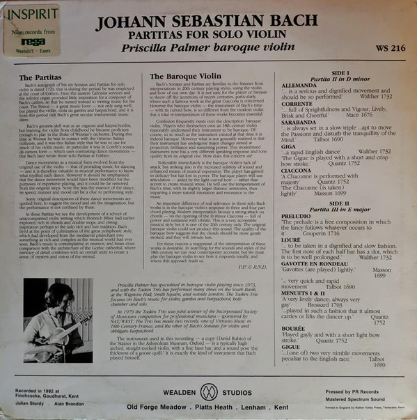 Johann Sebastian Bach – Partitas For Solo Violin (1983) – Near Mint (NM or M-)