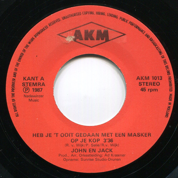 John & Jack – Heb Je ‘t Ooit Gedaan Met Een Masker Op Je Kop (1987) – Very Good Plus (VG+)