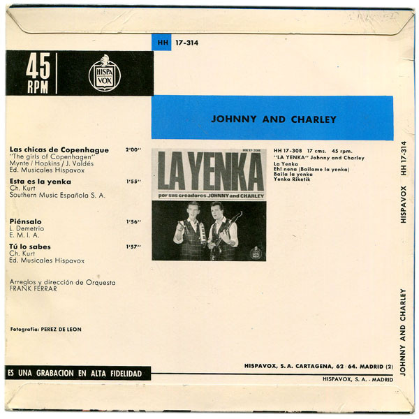 Johnny & Charley – + Yenka X Sus Creadores = Johnny And Charley (1965) – Very Good (VG)