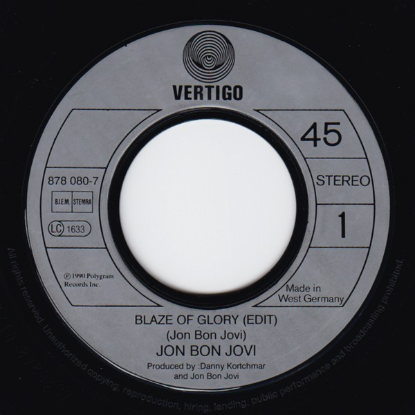 Jon Bon Jovi – Blaze Of Glory (1990) – Very Good Plus (VG+)