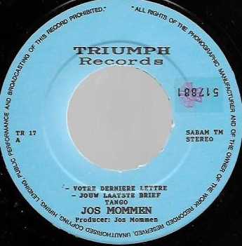 Jos Mommen – Votre Dernière Lettre / Cabaret De Nuits () – Very Good Plus (VG+)