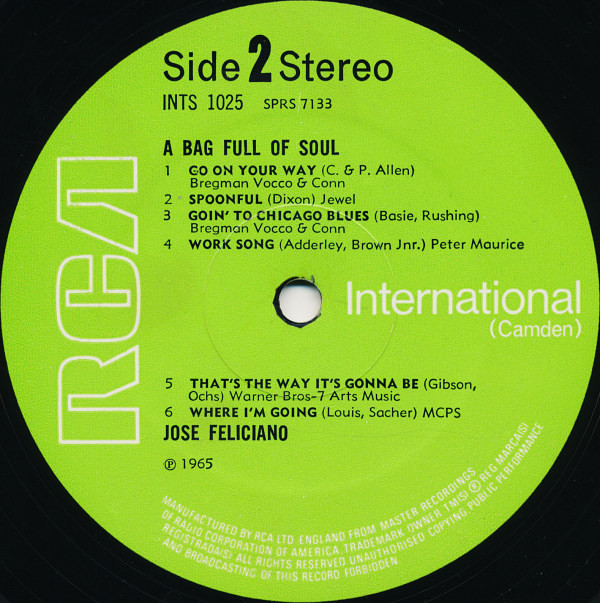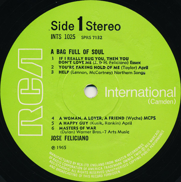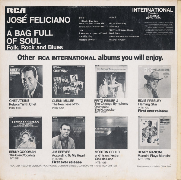 José Feliciano – A Bag Full Of Soul (Folk, Rock And Blues) (1969) – Very Good Plus (VG+)