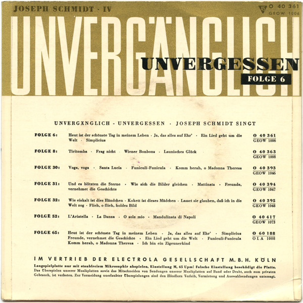 Joseph Schmidt – Joseph Schmidt · IV (1957) – Very Good (VG)