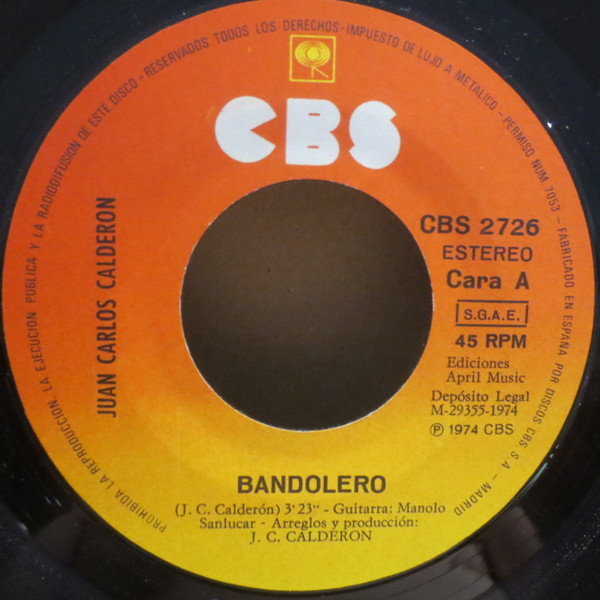 Juan Carlos Calderón – Bandolero (1974) – Very Good (VG)