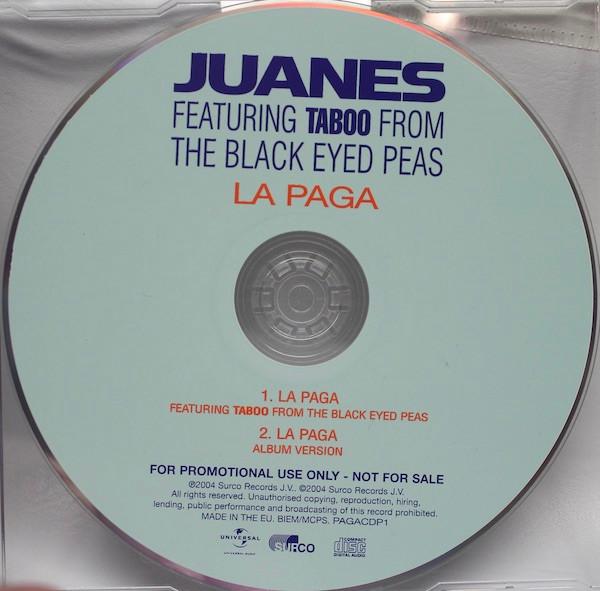 – [a=Taboo (9)] credited as: Taboo From The [a=Black Eyed Peas]. – Packaging: J-card case.