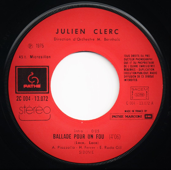 Julien Clerc – Ballade Pour Un Fou (Loco, Loco) (1975) – Very Good Plus (VG+)