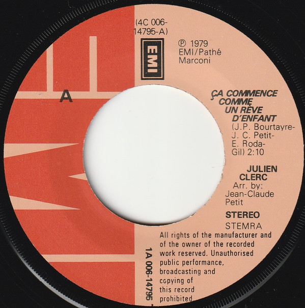 Julien Clerc – Ça Commence Comme Un Reve D’Enfant